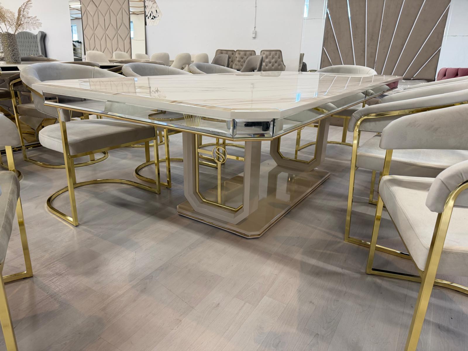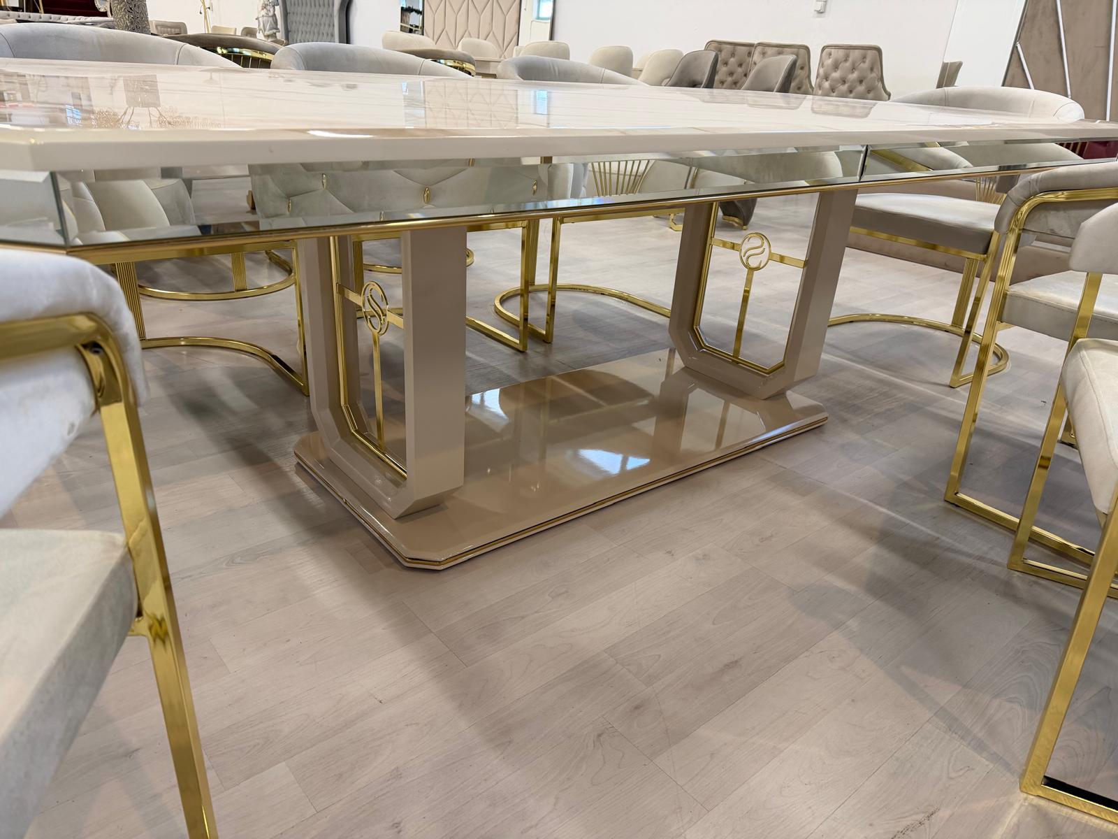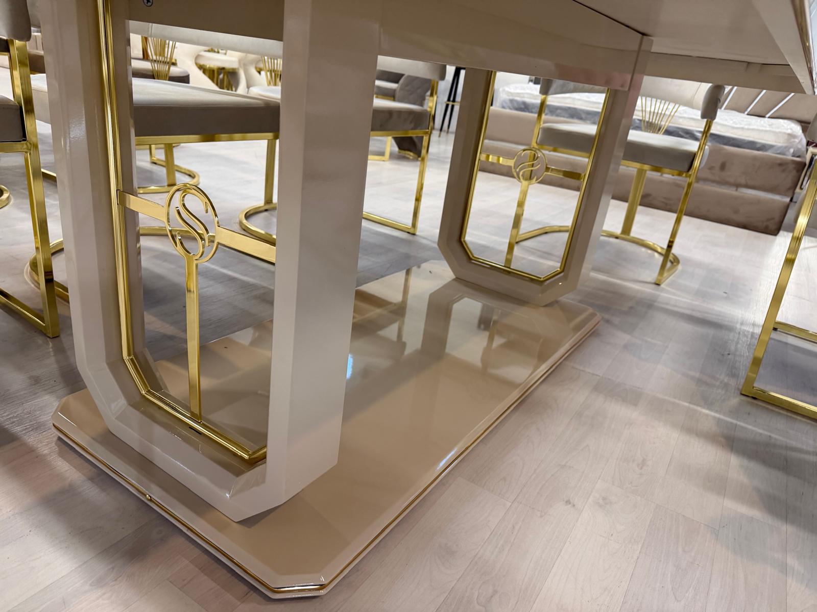 APOSTOL étkező asztal(240*120*78cm) 8 db székkel világos bézs és arany színben